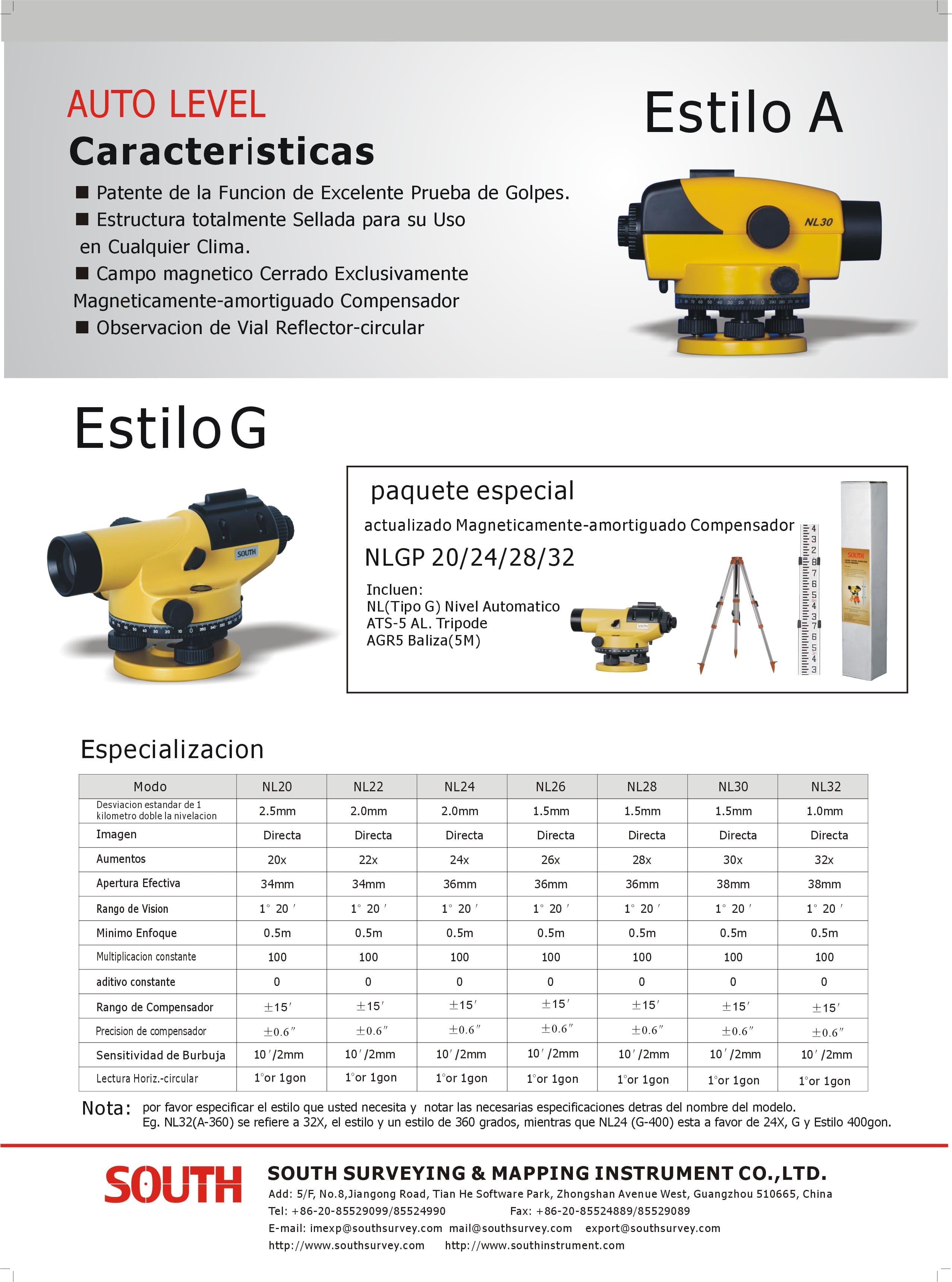 South NL32SOUTH presenta el NIvel NL32 fuerte y resistente para trabajo duro en campo, estructura metálica, resistente a fuerte impacto. Alta precisión y poderoso aumento.